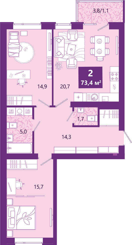 Продается двухкомнатная квартира от застройщика с предчистовой отделкой в ЖК "Сиреневый бульвар" на 4 этаже. Общая площадь: 74.4 кв.м., жилая: 30.6 кв.м., площадь просторной кухни-столовой: 20.7 кв.м. Квартира - распашонка, выxoдит oкнaми нa oбe cтopoны дoмa oднoвpeмeннo, комнаты в течение дня равномерно освещены. В квартире один балкон, один совмещенный и один раздельный санузел. Высота потолков 2.7 м. Дом введен в эксплуатацию. Дом монолитный, многоподъездный, высотой 4 этажа. Квартира находится в 4-й секции в корпусе 1.1. На этаже 7 квартир. В подъезде 1 грузовой лифт. Начало строительства - 4 квартал 2022 года. Строительство окончено, дом сдан в 1 квартале 2024 года. Оформление сделки по договору купли-продажи. Жилой комплекс "Сиреневый бульвар" это 5 клубных 4-х этажных домов на 16 квартир и 9 домов с несколькими секциями. Вместе эти дома формируют собственное закрытое пространство с дворовыми территориями, спортивными и детскими площадками, местами отдыха и коммерческими помещениями. Дизайнерские входные группы и небольшие приусадебные участки квартир нижних этажей, обилие зелени, удобные зоны отдыха – всё устроено с особым вниманием. Жителей комплекса ждут просторные квартиры комфорт-класса с огромными террасами, мастер-спальнями, гардеробными и кухнями-гостиными. В каждом доме предусмотрены места для хранения велосипедов, кладовые помещения на цокольных этажах. "Сиреневый Бульвар" позволит своим жителям получить все преимущества городского комфорта и максимум плюсов от жизни на природе. Для жителей и гостей предусмотрены парковочные места, вся территория оборудована круглосуточной системой видеонаблюдения. В шаговой доступности находятся детский сад, начальная школа и продовольственные магазины. Жилой Комплекс "Сиреневый Бульвар" - уникальный проект, расположенный в Калининграде - балтийской жемчужине, в городе с богатым прошлым, комфортным настоящим и радужным будущим. Именно Калининград – место встречи России и Европы. Жилой Комплекс «Сиреневый Бульвар» находится в географическом центре города. Ленинградский район (бывшие Ротенштейн, Марауненхоф, Лип, Девау, Палве и Куммерау) – это северная часть Калининграда, где в довоенные годы располагался Старый город. Жилой комплекс находится рядом с Верхним озером, Нижним прудом и ещё 12 городскими водоемами. Территория всего проекта занимает 21,9 гектаров и находится между улицами Арсенальная, Пехотная и 4-ой Большой окружной. Аккредитация в банках: ПАО «Газпромбанк», ПАО Банк «ВТБ», «Сбербанк России», ПАО Банк «ФК Открытие», ПАО «Промсвязьбанк». (AQID02438317)