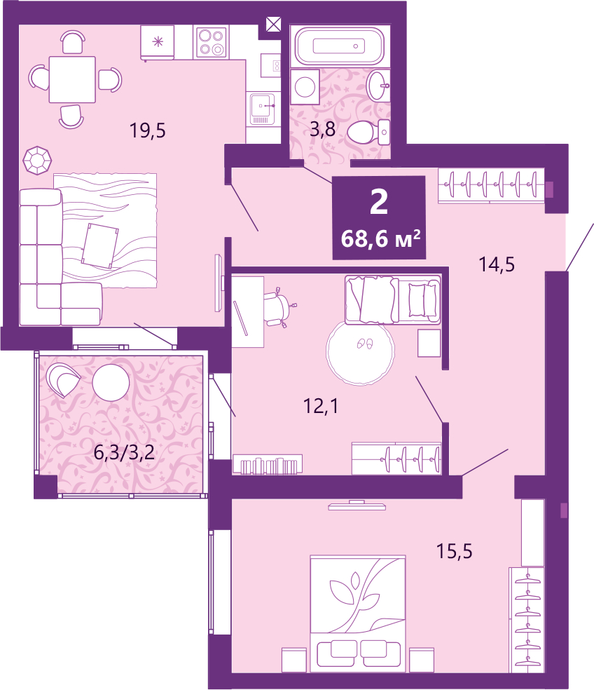 Просторная 2-комн. квартира с предчистовой отделкой в ЖК "Сиреневый бульвар" на 3 этаже. Общая площадь: 69.2 кв.м., жилая: 27.6 кв.м., площадь просторной кухни-столовой: 19.5 кв.м. Квартира угловая, идеально подойдет любителям тишины и панорамных видов. В квартире одна лоджия, один совмещенный санузел. Высота потолков 2.7 м. Дом монолитный, многоподъездный, высотой 4 этажа. Квартира находится в 5-й секции в корпусе 5.1. На этаже 5 квартир. В подъезде 1 грузовой лифт. Дом сдан. Оформление сделки по договору купли-продажи. Жилой комплекс "Сиреневый бульвар" это 5 клубных 4-х этажных домов на 16 квартир и 9 домов с несколькими секциями. Вместе эти дома формируют собственное закрытое пространство с дворовыми территориями, спортивными и детскими площадками, местами отдыха и коммерческими помещениями. Дизайнерские входные группы и небольшие приусадебные участки квартир нижних этажей, обилие зелени, удобные зоны отдыха – всё устроено с особым вниманием. Жителей комплекса ждут просторные квартиры комфорт-класса с огромными террасами, мастер-спальнями, гардеробными и кухнями-гостиными. В каждом доме предусмотрены места для хранения велосипедов, кладовые помещения на цокольных этажах. "Сиреневый Бульвар" позволит своим жителям получить все преимущества городского комфорта и максимум плюсов от жизни на природе. Для жителей и гостей предусмотрены парковочные места, вся территория оборудована круглосуточной системой видеонаблюдения. В шаговой доступности находятся детский сад, начальная школа и продовольственные магазины. Жилой Комплекс "Сиреневый Бульвар" - уникальный проект, расположенный в Калининграде - балтийской жемчужине, в городе с богатым прошлым, комфортным настоящим и радужным будущим. Именно Калининград – место встречи России и Европы. Жилой Комплекс «Сиреневый Бульвар» находится в географическом центре города. Ленинградский район (бывшие Ротенштейн, Марауненхоф, Лип, Девау, Палве и Куммерау) – это северная часть Калининграда, где в довоенные годы располагался Старый город. Жилой комплекс находится рядом с Верхним озером, Нижним прудом и ещё 12 городскими водоемами. Территория всего проекта занимает 21,9 гектаров и находится между улицами Арсенальная, Пехотная и 4-ой Большой окружной. Аккредитация в банках: «Сбербанк России», ПАО «Газпромбанк», ПАО Банк «ВТБ», ПАО Банк «ФК Открытие», ПАО «Промсвязьбанк». (AQID02499632)