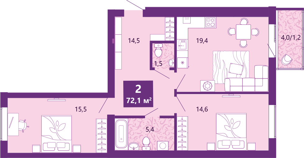 • Общая площадь 72.7 м²