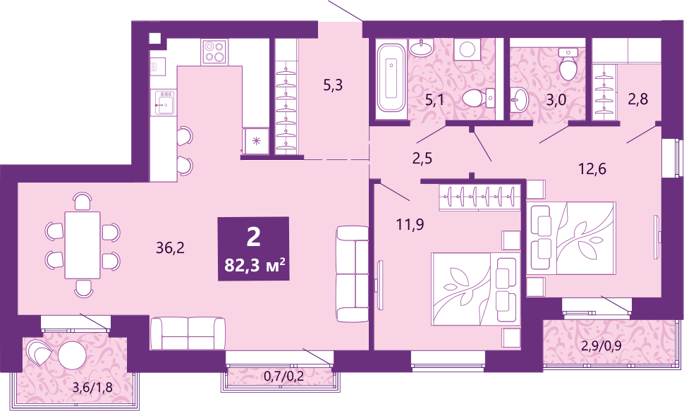 Просторная двухкомнатная квартира с предчистовой отделкой в ЖК "Сиреневый бульвар" на 3 этаже. Общая площадь: 83.5 кв.м., жилая: 24.5 кв.м., площадь просторной кухни-столовой: 36.2 кв.м. Угловая квартира, идеально подойдет любителям тишины и панорамных видов. В квартире один балкон и две лоджии, один совмещенный и один раздельный санузел. Высота потолков 2.7 м. Квартира находится в корпусе 5-2. Дом монолитный, одноподъездный, высотой 4 этажа. На этаже 4 квартиры. В подъезде 1 грузовой лифт. Дом сдан. Оформление сделки по договору купли-продажи. Жилой комплекс "Сиреневый бульвар" это 5 клубных 4-х этажных домов на 16 квартир и 9 домов с несколькими секциями. Вместе эти дома формируют собственное закрытое пространство с дворовыми территориями, спортивными и детскими площадками, местами отдыха и коммерческими помещениями. Дизайнерские входные группы и небольшие приусадебные участки квартир нижних этажей, обилие зелени, удобные зоны отдыха – всё устроено с особым вниманием. Жителей комплекса ждут просторные квартиры комфорт-класса с огромными террасами, мастер-спальнями, гардеробными и кухнями-гостиными. В каждом доме предусмотрены места для хранения велосипедов, кладовые помещения на цокольных этажах. "Сиреневый Бульвар" позволит своим жителям получить все преимущества городского комфорта и максимум плюсов от жизни на природе. Для жителей и гостей предусмотрены парковочные места, вся территория оборудована круглосуточной системой видеонаблюдения. В шаговой доступности находятся детский сад, начальная школа и продовольственные магазины. Жилой Комплекс "Сиреневый Бульвар" - уникальный проект, расположенный в Калининграде - балтийской жемчужине, в городе с богатым прошлым, комфортным настоящим и радужным будущим. Именно Калининград – место встречи России и Европы. Жилой Комплекс «Сиреневый Бульвар» находится в географическом центре города. Ленинградский район (бывшие Ротенштейн, Марауненхоф, Лип, Девау, Палве и Куммерау) – это северная часть Калининграда, где в довоенные годы располагался Старый город. Жилой комплекс находится рядом с Верхним озером, Нижним прудом и ещё 12 городскими водоемами. Территория всего проекта занимает 21,9 гектаров и находится между улицами Арсенальная, Пехотная и 4-ой Большой окружной. Аккредитация в банках: ПАО Банк «ВТБ», «Сбербанк России», ПАО «Газпромбанк», ПАО «Промсвязьбанк», ПАО Банк «ФК Открытие». (AQID02499608)