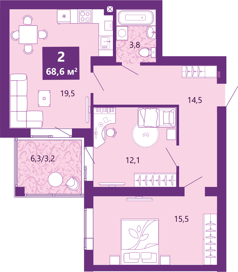 Просторная двухкомнатная квартира с предчистовой отделкой в ЖК "Сиреневый бульвар" на 2 этаже. Общая площадь: 69.2 кв.м., жилая: 27.6 кв.м., площадь просторной кухни-столовой: 19.5 кв.м. Угловая квартира, окна oбecпeчивaют paвнoмepнoe ocвeщeниe в тeчeниe дня. В квартире одна лоджия, один совмещенный санузел. Высота потолков 2.7 м. Дом монолитный, многоподъездный, высотой 4 этажа. Квартира находится в 5-й секции в корпусе 5.1. На этаже 5 квартир. В подъезде 1 грузовой лифт. Дом сдан. Оформление сделки по договору купли-продажи. Жилой комплекс "Сиреневый бульвар" это 5 клубных 4-х этажных домов на 16 квартир и 9 домов с несколькими секциями. Вместе эти дома формируют собственное закрытое пространство с дворовыми территориями, спортивными и детскими площадками, местами отдыха и коммерческими помещениями. Дизайнерские входные группы и небольшие приусадебные участки квартир нижних этажей, обилие зелени, удобные зоны отдыха – всё устроено с особым вниманием. Жителей комплекса ждут просторные квартиры комфорт-класса с огромными террасами, мастер-спальнями, гардеробными и кухнями-гостиными. В каждом доме предусмотрены места для хранения велосипедов, кладовые помещения на цокольных этажах. "Сиреневый Бульвар" позволит своим жителям получить все преимущества городского комфорта и максимум плюсов от жизни на природе. Для жителей и гостей предусмотрены парковочные места, вся территория оборудована круглосуточной системой видеонаблюдения. В шаговой доступности находятся детский сад, начальная школа и продовольственные магазины. Жилой Комплекс "Сиреневый Бульвар" - уникальный проект, расположенный в Калининграде - балтийской жемчужине, в городе с богатым прошлым, комфортным настоящим и радужным будущим. Именно Калининград – место встречи России и Европы. Жилой Комплекс «Сиреневый Бульвар» находится в географическом центре города. Ленинградский район (бывшие Ротенштейн, Марауненхоф, Лип, Девау, Палве и Куммерау) – это северная часть Калининграда, где в довоенные годы располагался Старый город. Жилой комплекс находится рядом с Верхним озером, Нижним прудом и ещё 12 городскими водоемами. Территория всего проекта занимает 21,9 гектаров и находится между улицами Арсенальная, Пехотная и 4-ой Большой окружной. Аккредитация в банках: ПАО Банк «ВТБ», ПАО «Газпромбанк», «Сбербанк России», ПАО Банк «ФК Открытие», ПАО «Промсвязьбанк». (AQID02499629)