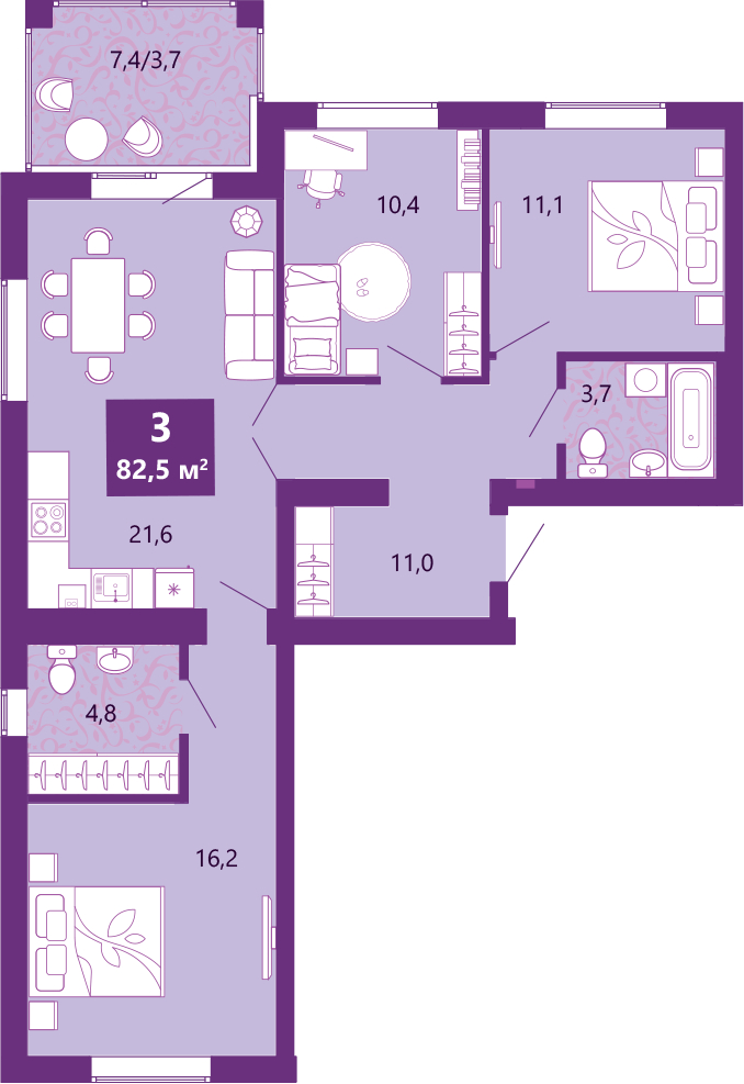 Трехкомнатная квартира с предчистовой отделкой в ЖК "Сиреневый бульвар" на 3 этаже. Общая площадь: 83.4 кв.м., жилая: 37.7 кв.м., площадь просторной кухни-столовой: 21.6 кв.м. Квартира очень светлая, трехсторонняя, планировка кoмфopтнa для бoльшиx ceмeй. В квартире один балкон, один совмещенный и один раздельный санузел. Высота потолков 2.7 м. Дом монолитный, многоподъездный, высотой 4 этажа. Квартира находится в 7-й секции в корпусе 5.1. На этаже 7 квартир. В подъезде 1 грузовой лифт. Дом сдан. Оформление сделки по договору купли-продажи. Жилой комплекс "Сиреневый бульвар" это 5 клубных 4-х этажных домов на 16 квартир и 9 домов с несколькими секциями. Вместе эти дома формируют собственное закрытое пространство с дворовыми территориями, спортивными и детскими площадками, местами отдыха и коммерческими помещениями. Дизайнерские входные группы и небольшие приусадебные участки квартир нижних этажей, обилие зелени, удобные зоны отдыха – всё устроено с особым вниманием. Жителей комплекса ждут просторные квартиры комфорт-класса с огромными террасами, мастер-спальнями, гардеробными и кухнями-гостиными. В каждом доме предусмотрены места для хранения велосипедов, кладовые помещения на цокольных этажах. "Сиреневый Бульвар" позволит своим жителям получить все преимущества городского комфорта и максимум плюсов от жизни на природе. Для жителей и гостей предусмотрены парковочные места, вся территория оборудована круглосуточной системой видеонаблюдения. В шаговой доступности находятся детский сад, начальная школа и продовольственные магазины. Жилой Комплекс "Сиреневый Бульвар" - уникальный проект, расположенный в Калининграде - балтийской жемчужине, в городе с богатым прошлым, комфортным настоящим и радужным будущим. Именно Калининград – место встречи России и Европы. Жилой Комплекс «Сиреневый Бульвар» находится в географическом центре города. Ленинградский район (бывшие Ротенштейн, Марауненхоф, Лип, Девау, Палве и Куммерау) – это северная часть Калининграда, где в довоенные годы располагался Старый город. Жилой комплекс находится рядом с Верхним озером, Нижним прудом и ещё 12 городскими водоемами. Территория всего проекта занимает 21,9 гектаров и находится между улицами Арсенальная, Пехотная и 4-ой Большой окружной. Аккредитация в банках: «Сбербанк России», ПАО Банк «ВТБ», ПАО «Газпромбанк», ПАО «Промсвязьбанк», ПАО Банк «ФК Открытие». (AQID02499644)