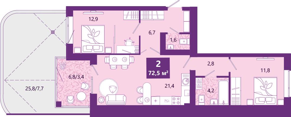 - Общая площадь 73.5 м²