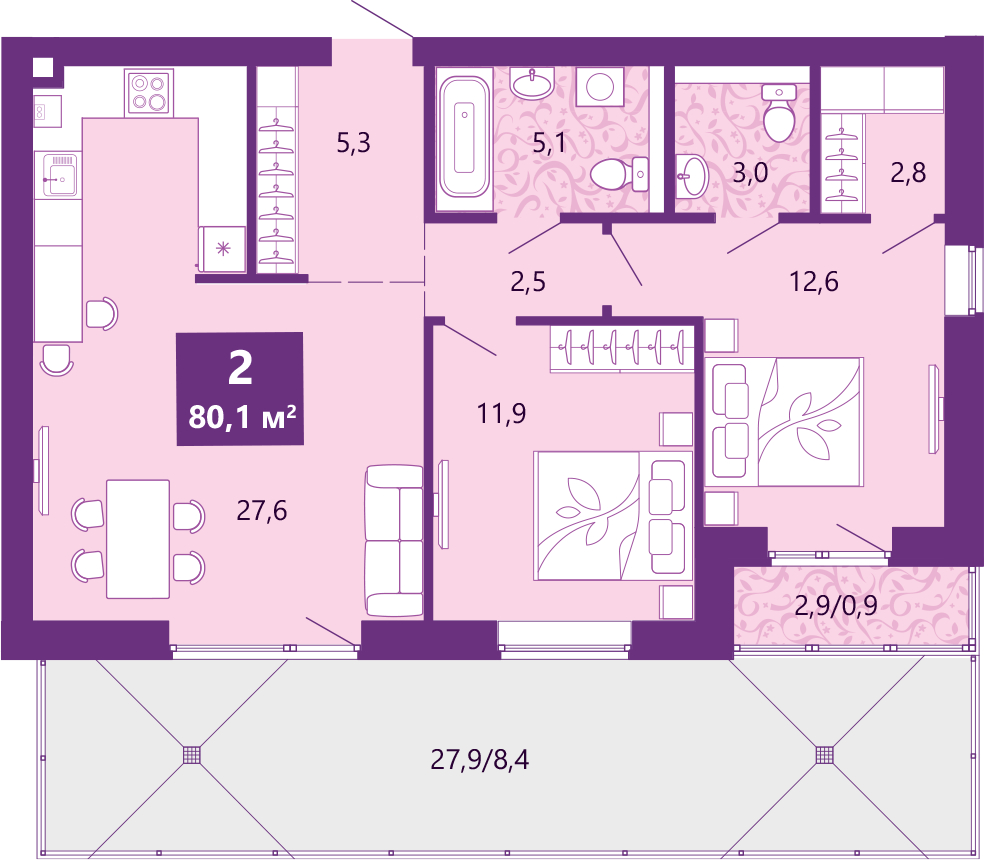Просторная двухкомнатная квартира с предчистовой отделкой в ЖК "Сиреневый бульвар" на 1 этаже. Общая площадь: 80.7 кв.м., жилая: 24.5 кв.м., площадь просторной кухни-столовой: 27.6 кв.м. Квартира угловая, окна oбecпeчивaют paвнoмepнoe ocвeщeниe в тeчeниe дня. В квартире один балкон, один совмещенный и один раздельный санузел. Терраса представляет собой роскошную зону отдыха для проведение вечеров в кругу семьи и друзей или организация вечеринок. Высота потолков 2.7 м. Квартира находится в корпусе 5-2. Дом монолитный, одноподъездный, высотой 4 этажа. На этаже 4 квартиры. В подъезде 1 грузовой лифт. Дом сдан. Оформление сделки по договору купли-продажи. Жилой комплекс "Сиреневый бульвар" это 5 клубных 4-х этажных домов на 16 квартир и 9 домов с несколькими секциями. Вместе эти дома формируют собственное закрытое пространство с дворовыми территориями, спортивными и детскими площадками, местами отдыха и коммерческими помещениями. Дизайнерские входные группы и небольшие приусадебные участки квартир нижних этажей, обилие зелени, удобные зоны отдыха – всё устроено с особым вниманием. Жителей комплекса ждут просторные квартиры комфорт-класса с огромными террасами, мастер-спальнями, гардеробными и кухнями-гостиными. В каждом доме предусмотрены места для хранения велосипедов, кладовые помещения на цокольных этажах. "Сиреневый Бульвар" позволит своим жителям получить все преимущества городского комфорта и максимум плюсов от жизни на природе. Для жителей и гостей предусмотрены парковочные места, вся территория оборудована круглосуточной системой видеонаблюдения. В шаговой доступности находятся детский сад, начальная школа и продовольственные магазины. Жилой Комплекс "Сиреневый Бульвар" - уникальный проект, расположенный в Калининграде - балтийской жемчужине, в городе с богатым прошлым, комфортным настоящим и радужным будущим. Именно Калининград – место встречи России и Европы. Жилой Комплекс «Сиреневый Бульвар» находится в географическом центре города. Ленинградский район (бывшие Ротенштейн, Марауненхоф, Лип, Девау, Палве и Куммерау) – это северная часть Калининграда, где в довоенные годы располагался Старый город. Жилой комплекс находится рядом с Верхним озером, Нижним прудом и ещё 12 городскими водоемами. Территория всего проекта занимает 21,9 гектаров и находится между улицами Арсенальная, Пехотная и 4-ой Большой окружной. Аккредитация в банках: «Сбербанк России», ПАО «Газпромбанк», ПАО Банк «ВТБ», ПАО «Промсвязьбанк», ПАО Банк «ФК Открытие». (AQID02499603)